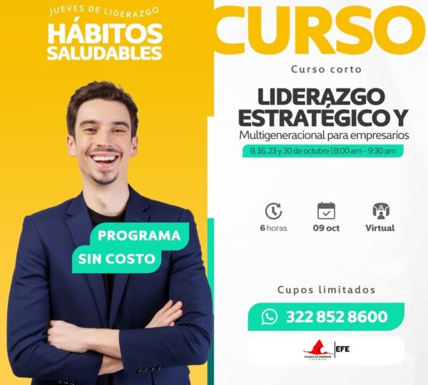 En el marco de los Jueves de Liderazgo y Hábitos Saludables, la Escuela de Formación Empresarial (EFE) y la Cámara de Comercio de Casanare te invitan a participar en este curso gratuito diseñado para fortalecer las competencias de los líderes empresariales.