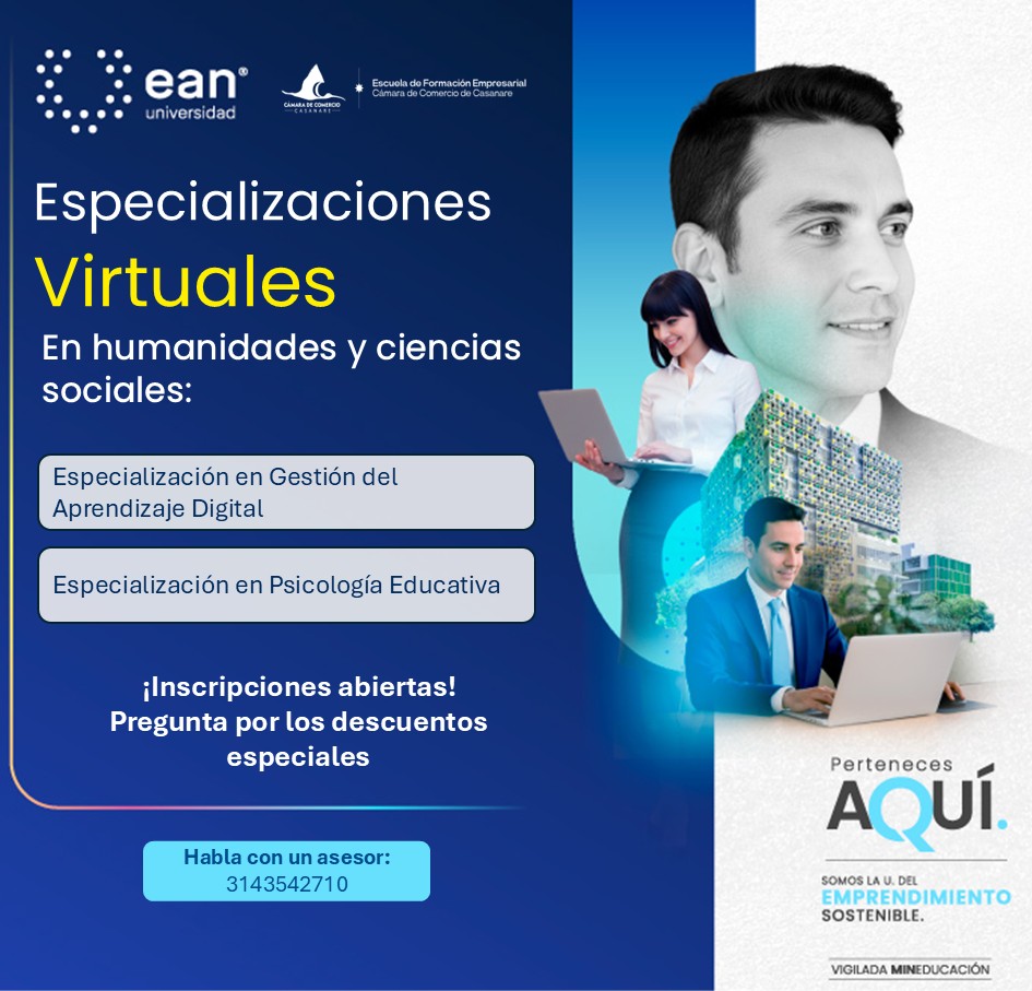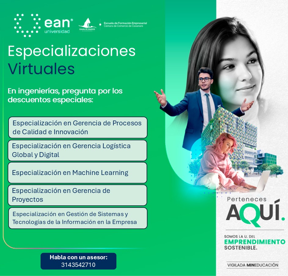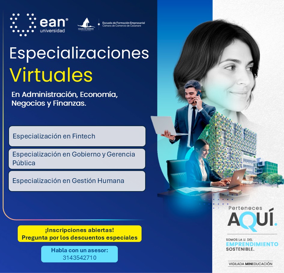 Gracias a nuestros convenios académicos con universidades de alto reconocimiento, como la Universidad EAN y la Universidad CEIPA, ponemos a tu alcance programas de especialización que integran excelencia académica, enfoque práctico y alineación con las necesidades del sector empresarial.